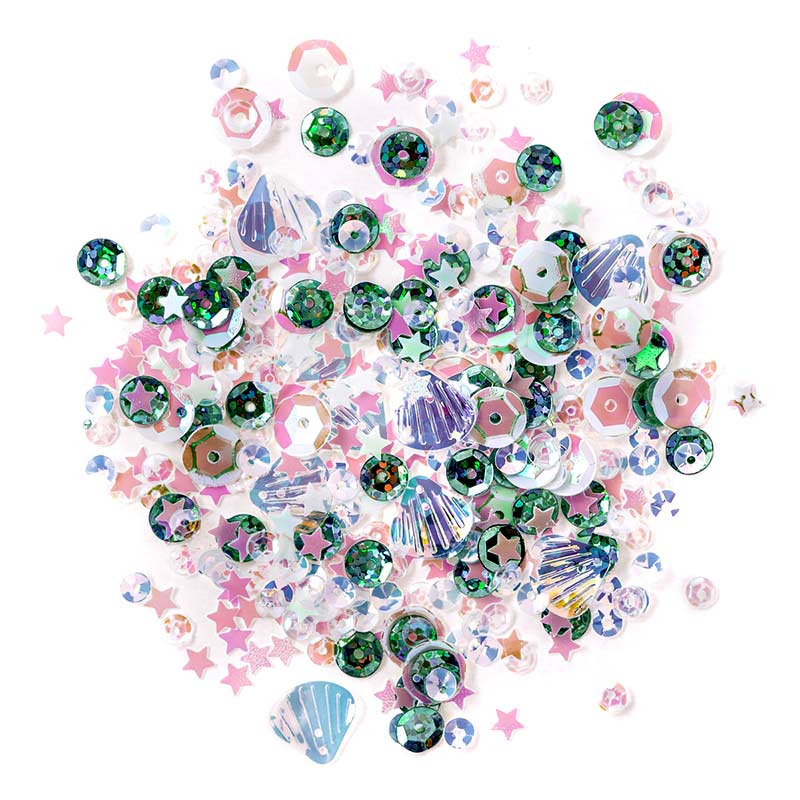 Mix cekinów opalizujących mermaid to zestaw zawierający sześć rodzajów cekinów w odcieniach różu i zieleni. W skład kompozycji wchodzą klasyczne okrągłe cekiny, muszelki, kwiatki i gwiazdeczki. Doskonałe do dziecięcych projektów, takich jak wyklejanki czy ozdabianie bombek, a także do bardziej zaawansowanych prac, takich jak biżuteria czy ozdabianie odzieży. Opakowanie zawiera 15 g cekinów o różnych rozmiarach (od 4 mm do 10 mm), które dodadzą blasku Twoim kreatywnym projektom.