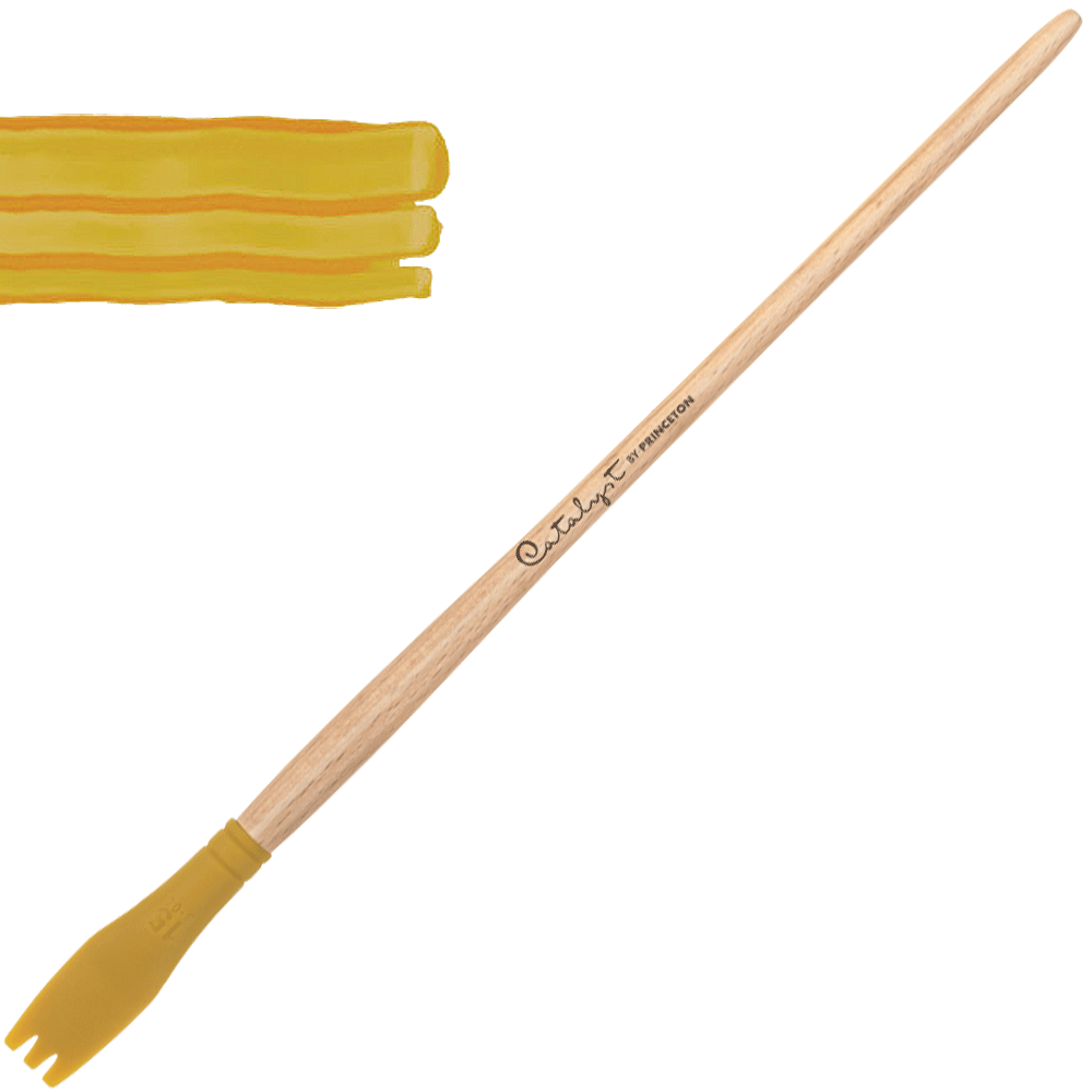 Łopatka Princeton z serii Catalyst Contour wykonana jest z tworzywa sztucznego przypominającego plastik. Jej konstrukcja - połączenie giętkiego sylikonu z drewnianym trzonkiem - pozwala wygodnie ułożyć łopatkę w dłoni i sprawia, że szpatułka łatwo reaguje na nacisk. Konturowane brzegi pozwalają osiągać ciekawe kształty i wzory podczas pracy z farbami i mediami, a także w ceramice, rzeźbie i innych technikach. Łopatka Princeton to narzędzie znajdujące się pomiędzy pędzlem, a nożem malarskim dzięki czemu jest wszechstronna.