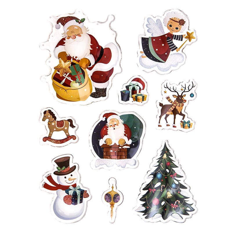 Naklejki żelowe brokatowe - święta 9 sztuk.