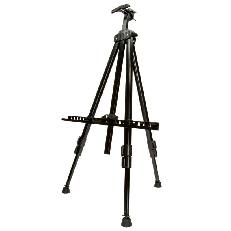 Lekka i mobilna sztaluga typu trójnóg w czarnym kolorze, została wykonana z aluminium i tworzywa sztucznego. Dzięki możliwości złożenia (długość sztalugi po złożeniu to 53 cm), idealnie nadaje się do pracy nie tylko w studio, ale przede wszystkim w plenerze. Świetnie sprawdzi się również na wystawach, jako stojak ekspozycyjny.