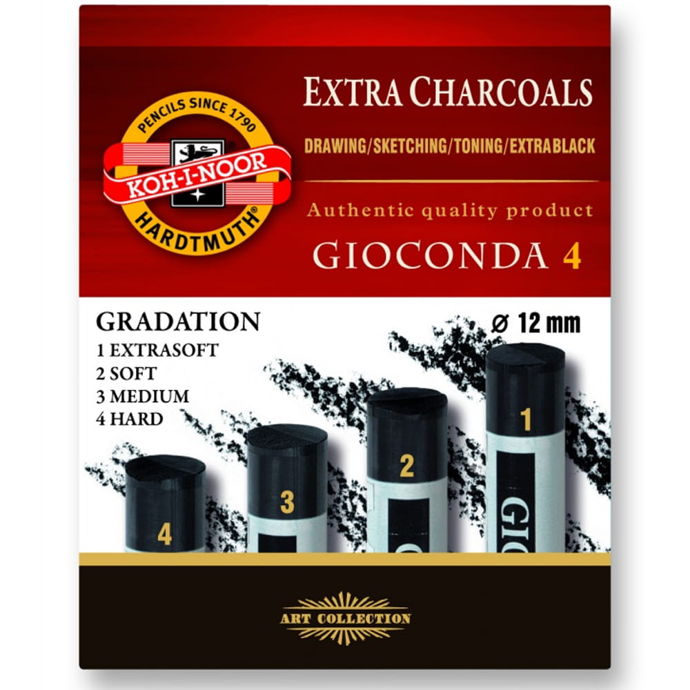Zestaw węgli prasowanych Gioconda 8694 Extra Charcoals 4 szt., mix gradacji Koh-I-Noor
