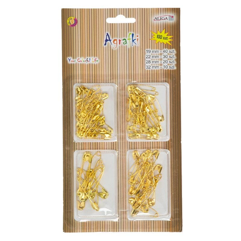 Agrafki złote mix wielkości zestaw 100 szt. Aliga