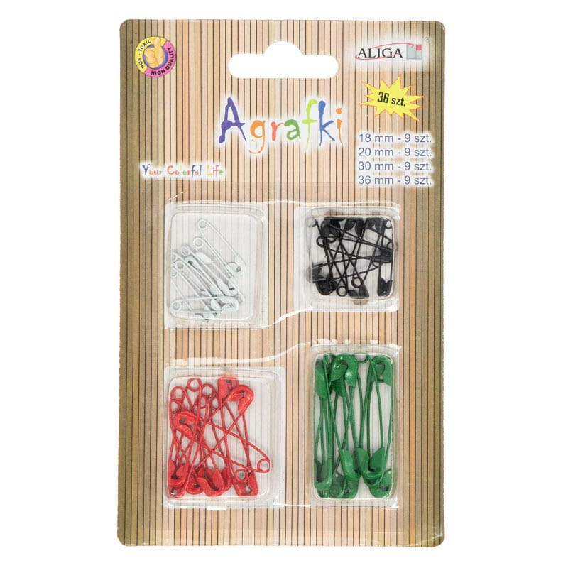 Agrafki w mixie kolorystycznym to praktyczny zestaw zawierający 36 sztuk agrafek w czterech różnych rozmiarach: 18 mm, 20 mm, 30 mm i 36 mm. W opakowaniu znajdziesz po 9 sztuk każdego rozmiaru. Agrafki wykonane są z niklowanego metalu, co zapewnia ich trwałość i odporność na korozję. Dostępne w czterech kolorach – czerwonym, zielonym, czarnym i białym – idealnie nadają się do mocowania materiałów, tworzenia biżuterii, naprawy odzieży czy innych projektów rękodzielniczych. To niezastąpiony element w pracy szwaczek, krawcowych i osób zajmujących się DIY.