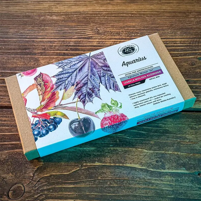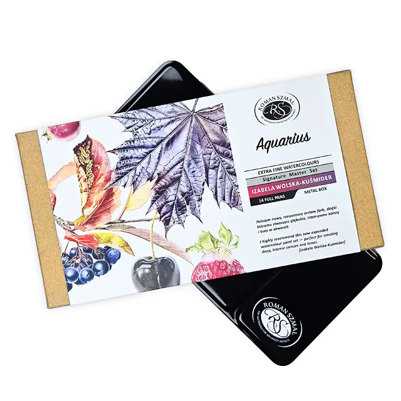 Farby akwarelowe Aquarius marki Roman Szmal to farby najwyższej jakości produkowane w Krakowie. Większość z kolorów w pełnej, wciąż poszerzającej się gamie opiera się na jednym pigmencie, co gwarantuje najczystsze kolory.
