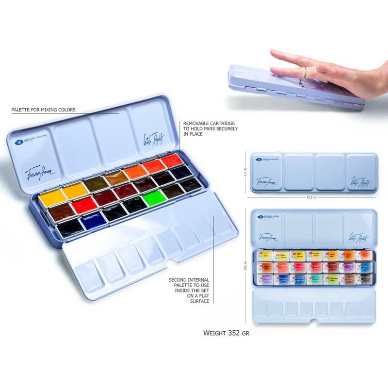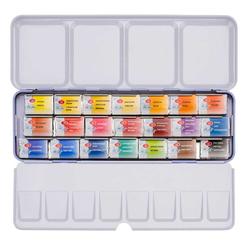 Zestaw zawiera 21 kostek akwareli w kolorach: