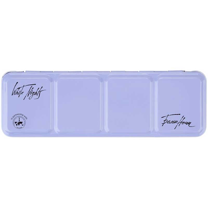 Farby są zapakowane w małą, wytrzymałą i bardzo poręczną, metalową kasetkę w tradycyjnym dla Białych Nocy, jasnym kolorze fioletu. Idealne do zabrania ze sobą w podróż.