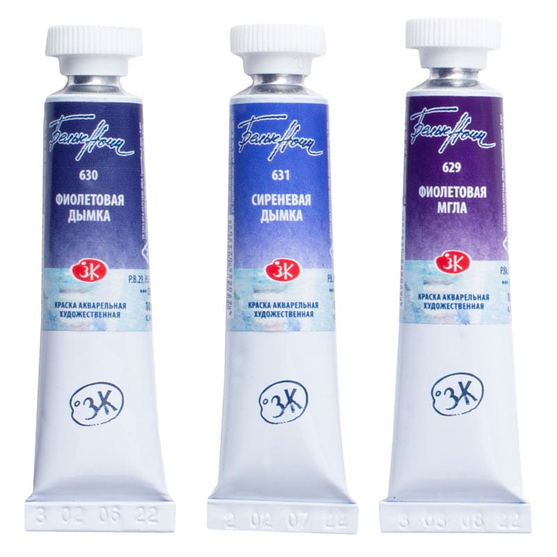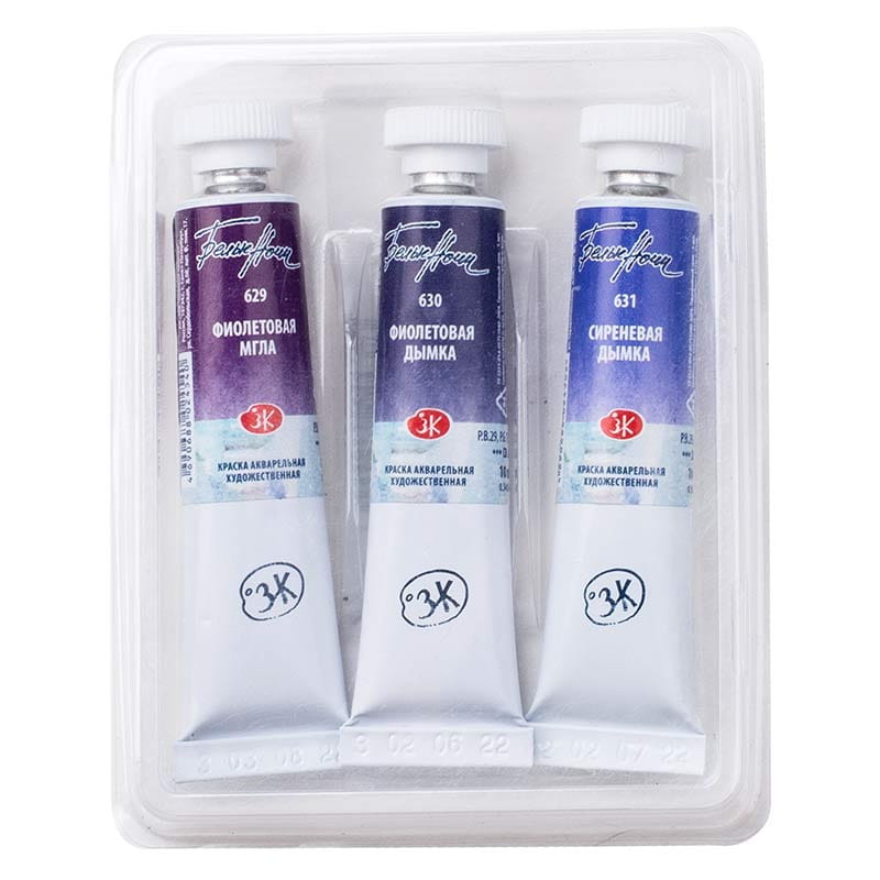 Farby akwarelowe w tubkach Białe Noce, zestaw 3 x 10 ml - VIOLET kolory granulujące