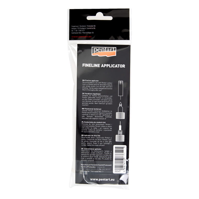 Aplikator precyzyjny Pentart o grubości 0,8 mm i pojemności ok. 20 ml służy do wykonywania cienkich linii i detali. Dzięki metalowej, wykonanej ze stali nierdzewnej końcówce, buteleczka gładko i bardzo precyzyjnie dozuje dowolny płyn, którym się ją napełni. Świetna do użycia z atramentem, tuszem, farbą akrylową, gwaszem i farbami 3D, a nawet do kleju, co czyni z niej również świetne narzędzie do scrapbookingu i decoupage'u. Można używać jej też w roli długopisu!