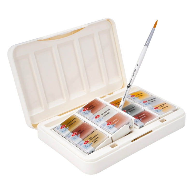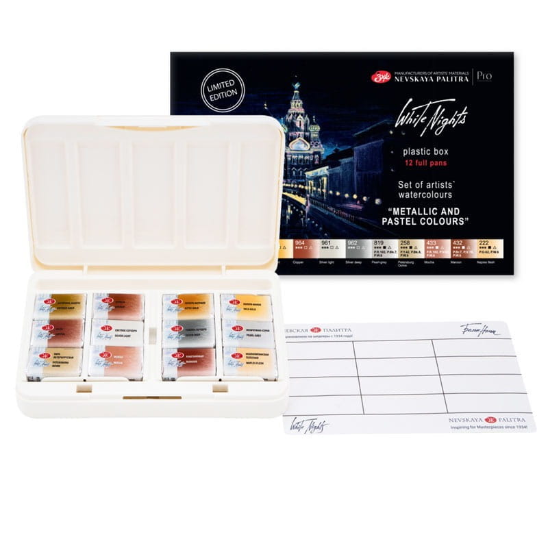 Zestaw farb akwarelowych White Nights 12 szt. Kolory metaliczne i pastelowe w plastikowej kasecie