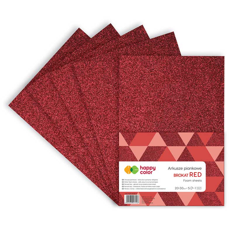 Arkusze piankowe Happy Color A4 brokatowe - czerwone