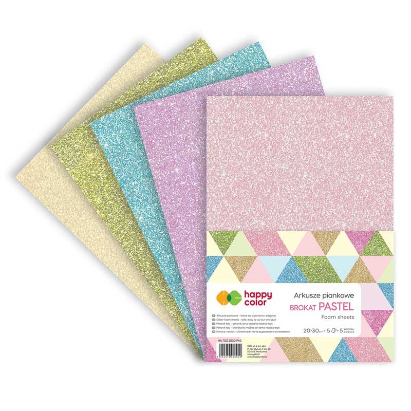 Arkusze piankowe Happy Color A4 brokatowe - pastelowe kolory