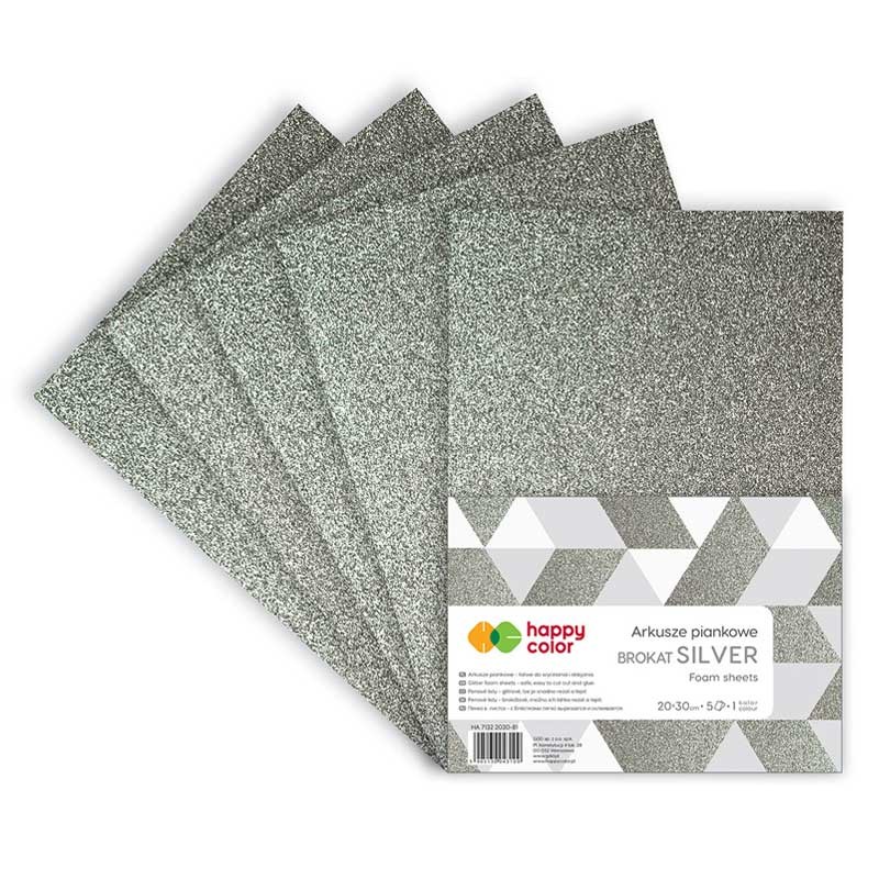 Arkusze piankowe Happy Color A4 brokatowe - srebrne