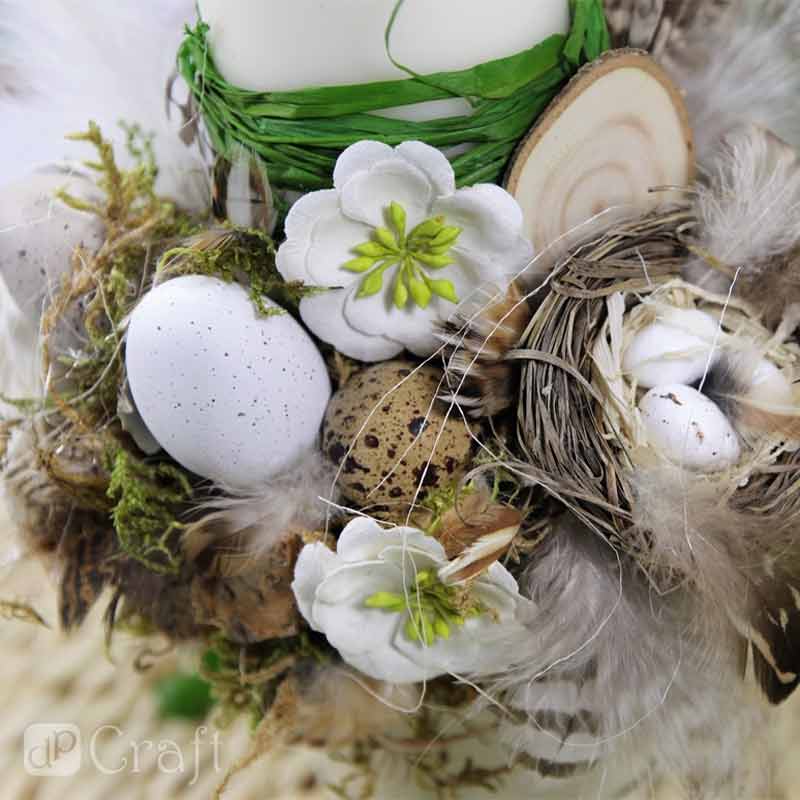 Kolor: białe pisanki i piórka w kolorze naturalnym