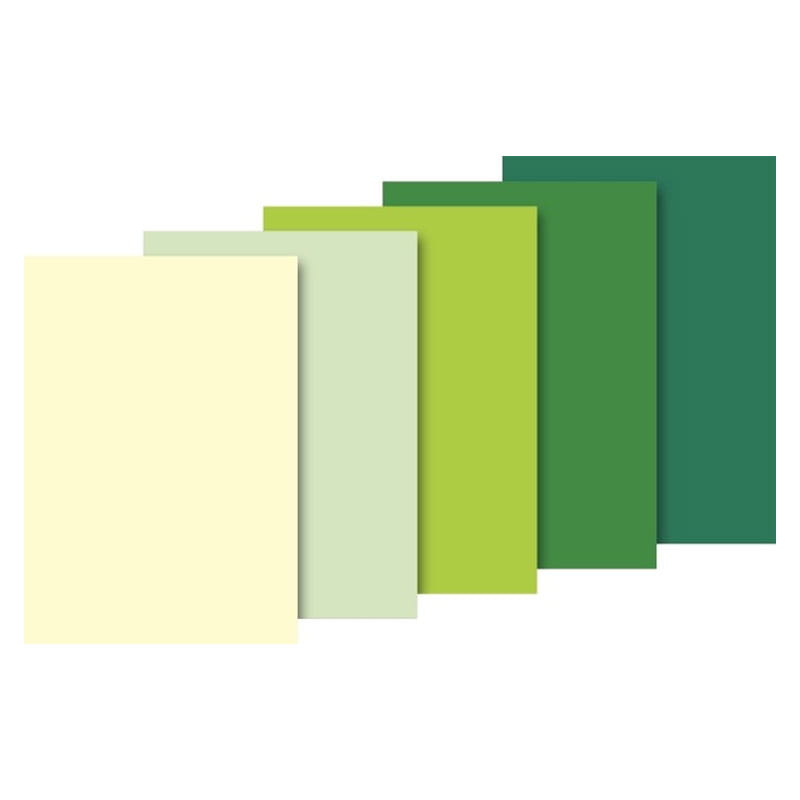 Opakowanie zawiera 10 sztuk bibuły o wymiarach 50 x 70 cm w 5 kolorach: bladożółtym, jasnozielonym, seledynowym, zielonym, ciemnozielonym.