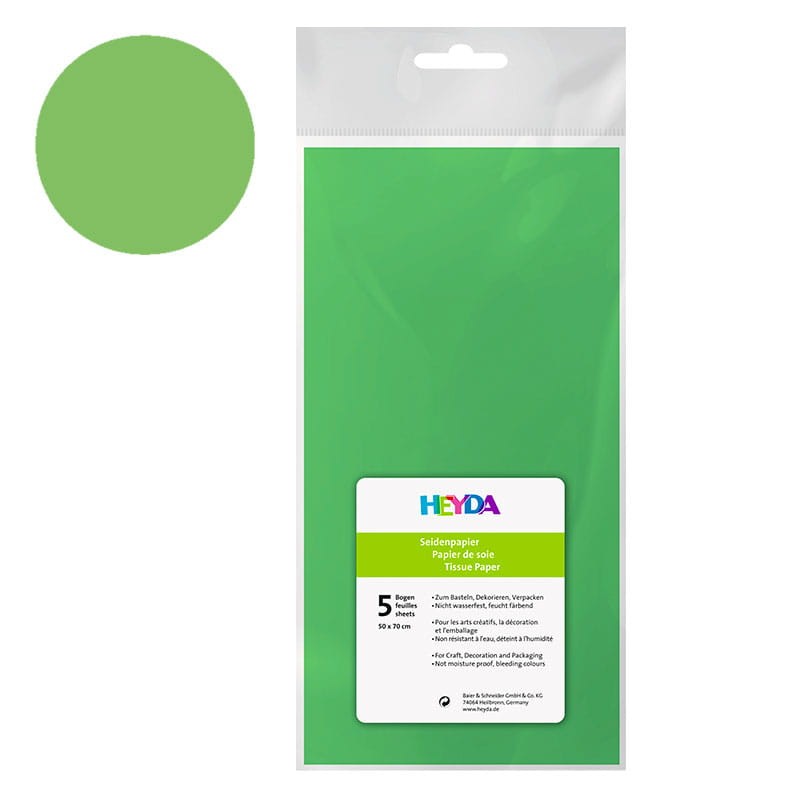 Bibuła gładka Heyda 50 x 70 cm 5 szt. - zielona jasna