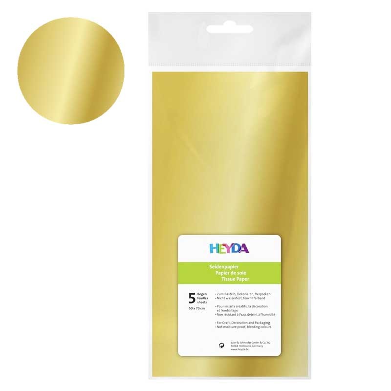Bibuła gładka Heyda 50 x 70 cm 5 szt. - złota