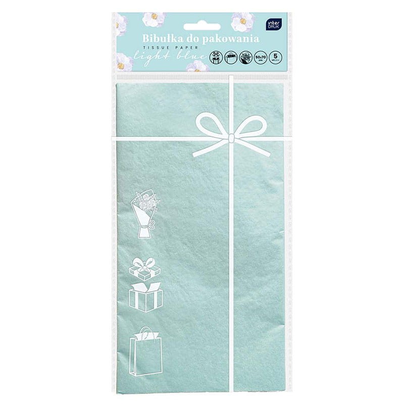 Bibuła gładka w arkuszach do pakowania prezentów 50x70 cm 5 szt. jasnoniebieski