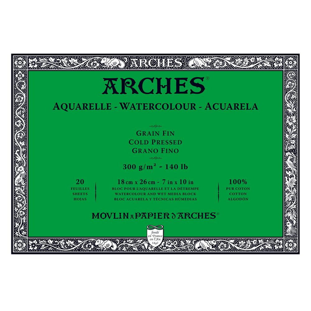 Papier w bloku do akwareli Arches® w trakcie produkcji jest poddany unikalnemu procesowi zaklejania naturalną żelatyną, która nadaje mu niezrównaną odporność na ścieranie i wydrapywanie oraz zapewnia wierne odwzorowywanie kolorów. Papier Arches® jest trwały, zgodny z normą ISO 9706 i zabezpieczony przeciwko pleśni. Jego biel jest naturalna, uzyskana bez stosowania wybielaczy optycznych. Zapewnia on w ten sposób optymalne możliwości przechowywania.