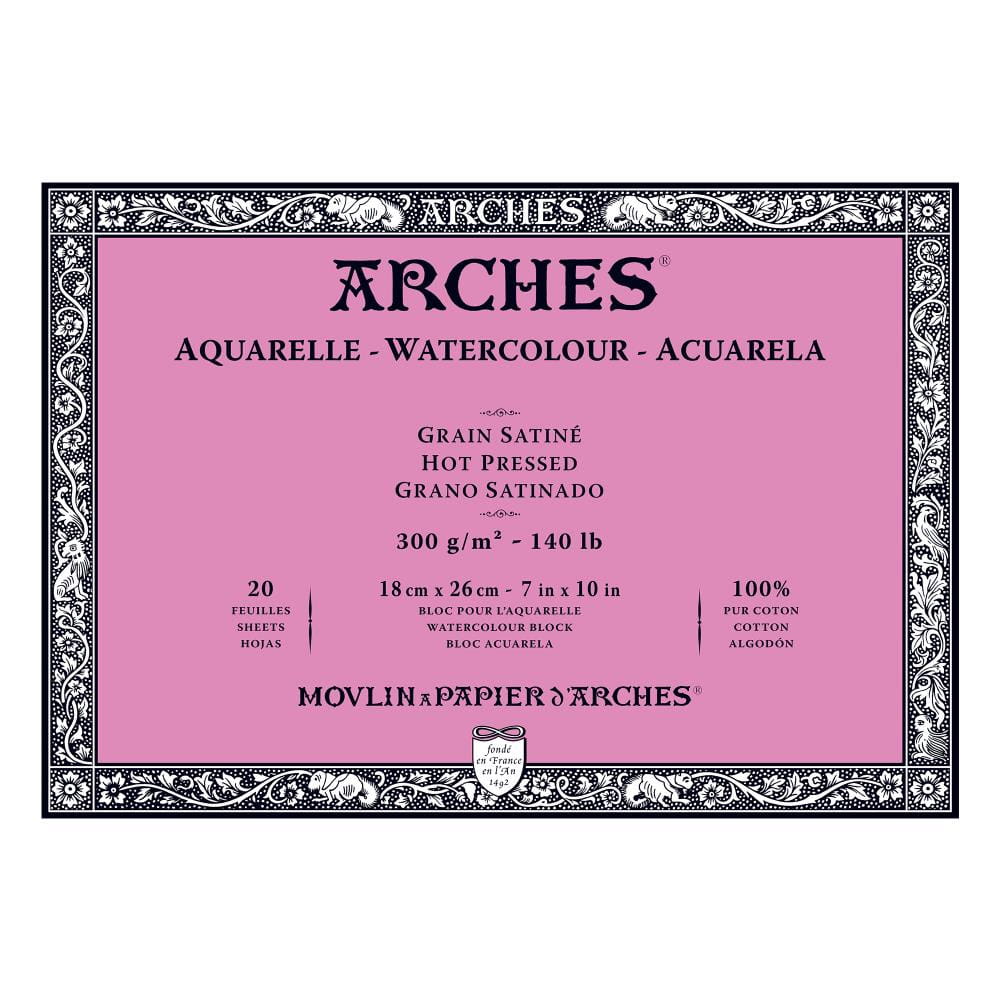 Blok do akwareli Arches Grain Satine - 18 x 26 cm, 300 g, 20 ark., 100% bawełny, hot pressed