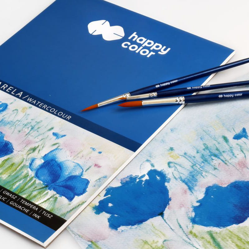 Blok Happy Color w formacie A5 to wygodny papier do akwareli, tempery, gwaszu i farb akrylowych. Sprawdzi się także przy rysunku ołówkiem, pastelach czy tuszu. Gramatura 250 g/m² zapewnia stabilność przy mokrych technikach, a papier dobrze znosi korekty i wymazywanie.