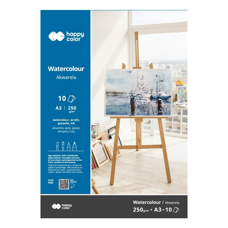 Blok do akwareli Happy Color - A3, 250 g, 10 ark.