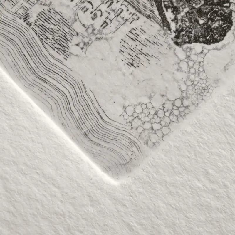 Blok Fabriano Unica to papier stworzony specjalnie z myślą o technikach graficznych warsztatowych - litografii, akwaforcie, linorycie i innych metodach odbitkowania. Zawartość 50% włókien bawełnianych nadaje mu gładką, aksamitną powierzchnię i wyjątkową elastyczność, dzięki czemu doskonale sprawdza się także w technikach suchych: ołówku, węglu, pasteli i sangwinie, a nawet w akwareli.