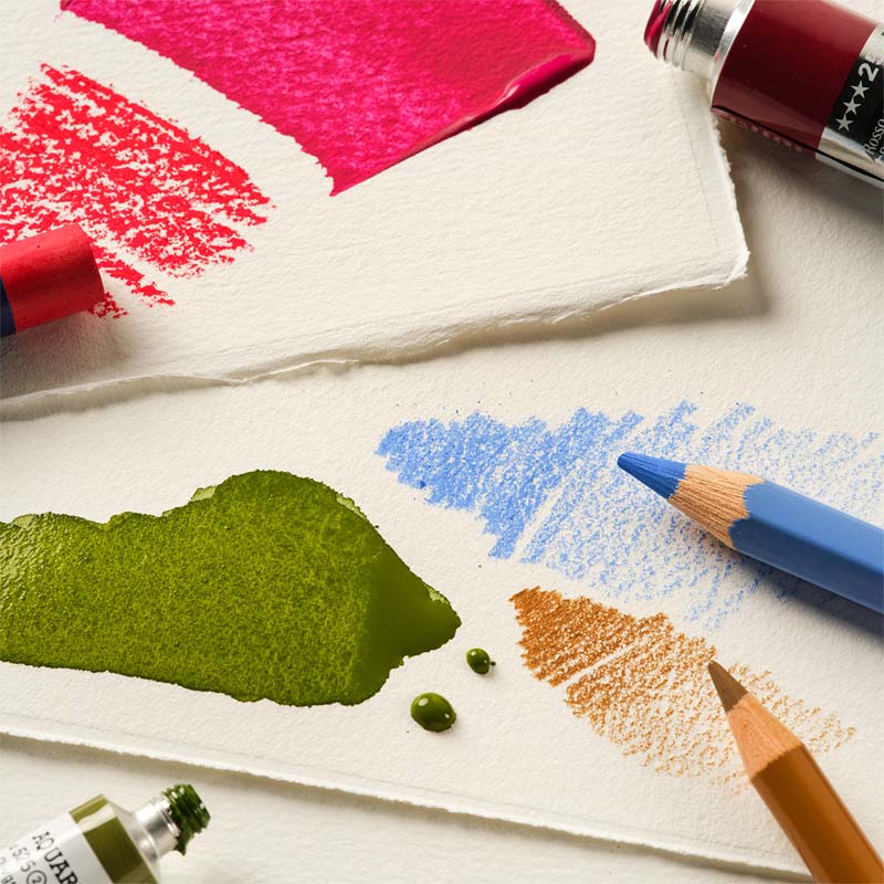 Nadaje się również do akwareli, temper, gwaszu oraz tuszu. Jest wówczas stabilny nawet przy użyciu wody, bardzo wytrzymały na tarcie mechaniczne, gwarantuje dobre rozlanie farby oraz ciekawe plamy i smugi, a farba akwarelowa wymywa się z niego niezwykle łatwo, na co trzeba uważać. Papier jest dwustronny.