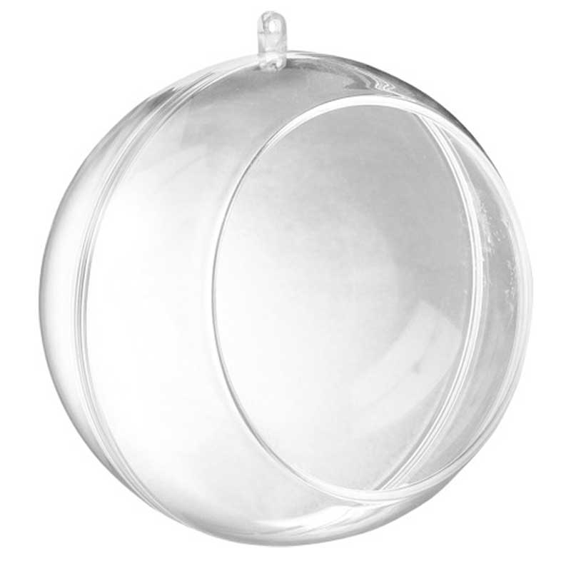Kula akrylowa 12 cm z otworem to praktyczna baza dekoracyjna wykonana z trwałego i przejrzystego akrylu, która składa się z dwóch połówek. Konstrukcja umożliwia ich łatwe rozdzielenie, co ułatwia dekorowanie zarówno od wewnątrz, jak i na zewnątrz. W jednej z połówek znajduje się otwór o średnicy 9 cm, każda kula ma też oczko służące do przełożenia sznurka lub wstążeczki i zawieszenia.