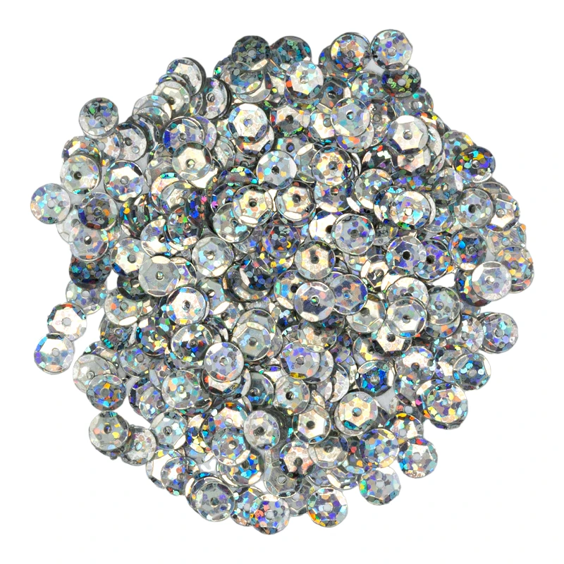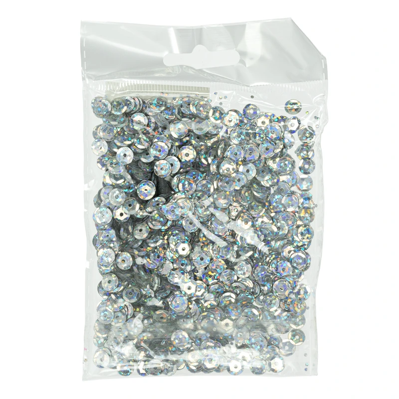 Błyszczące cekiny okrągłe o sześciokątnym łamaniu z metalicznym efektem i połyskiem brokatu, o średnicy 6 mm. W opakowaniu znajdziesz aż 15 gramów cekinów (około 1100 sztuk), co daje mnóstwo możliwości zdobniczych nawet do najbardziej rozbudowanych prac.