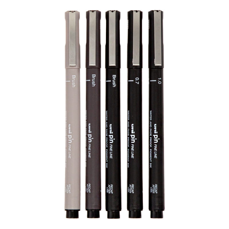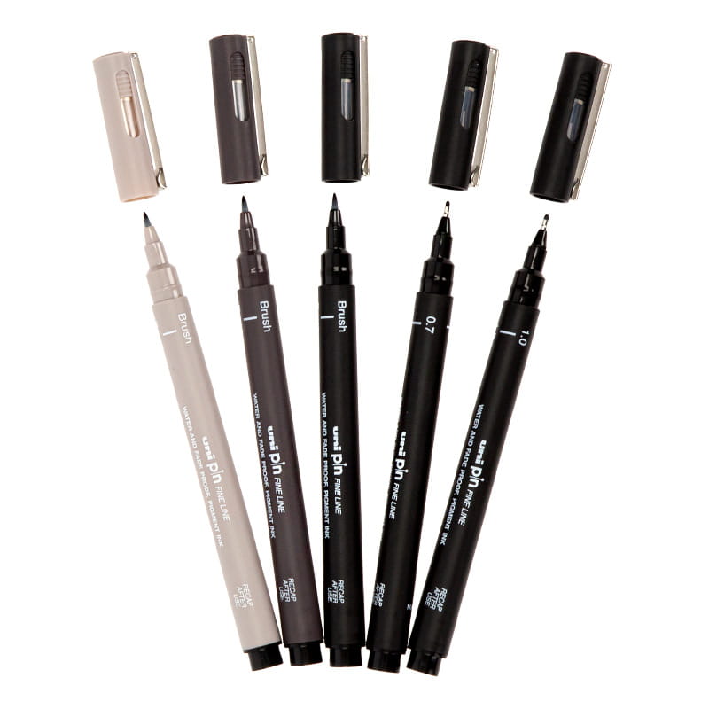 Zestaw profesjonalnych cienkopisów kreślarskich UNI PIN doskonały dla projektantów, grafików i artystów. Idealny do szkicowania i rysunku technicznego. Pisaki Uni Pin są wodoodporne, schną bardzo szybko i nie rozmazują się. Trwała i twarda końcówka fibrowa nie ulega rozwarstwieniu w miarę użytkowania.