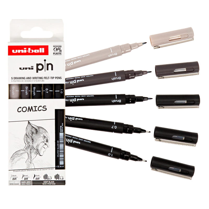 Cienkopisy kreślarskie Uni Pin zestaw 5 szt. Comics