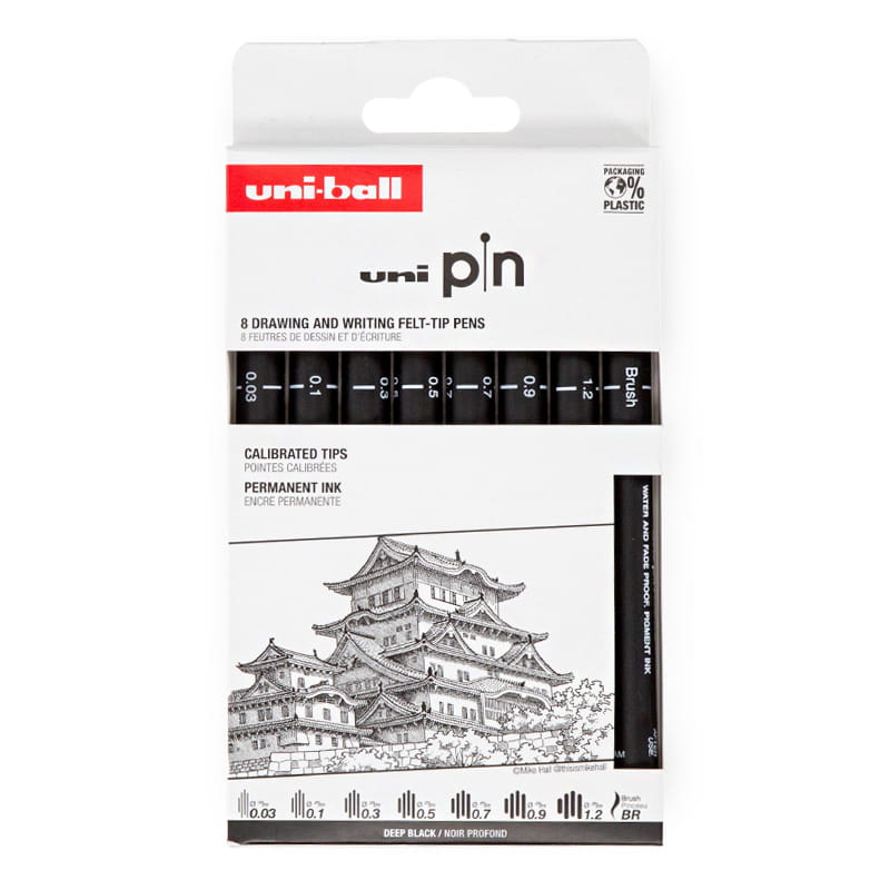 Zestaw cienkopisów kreślarskich UNI Pin 8 szt. zamek Himeji