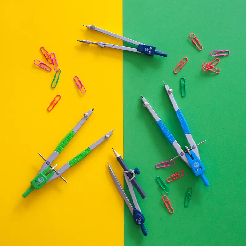 Lekki i łatwy w obsłudze cyrkiel do pierwszych ćwiczeń z geometrii. Wyposażony w bezpieczną igłę oraz uniwersalny adapter do ołówków i pisaków. W zestawie znajduje się mały ołówek.