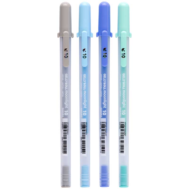 Żelopisy Gelly Roll Moonlight w odcieniach zorzy polarnej i pastelowych kolorach. Seria Moonlight oferuje najjaśniejsze i najbardziej żywe kolory w całej rodzinie Gelly Roll®.