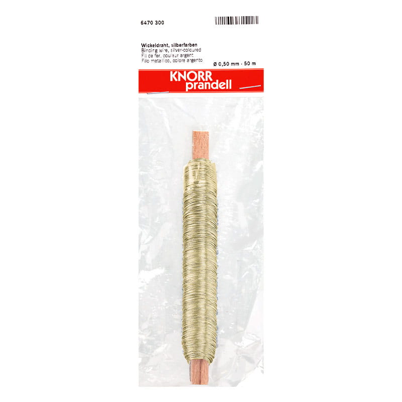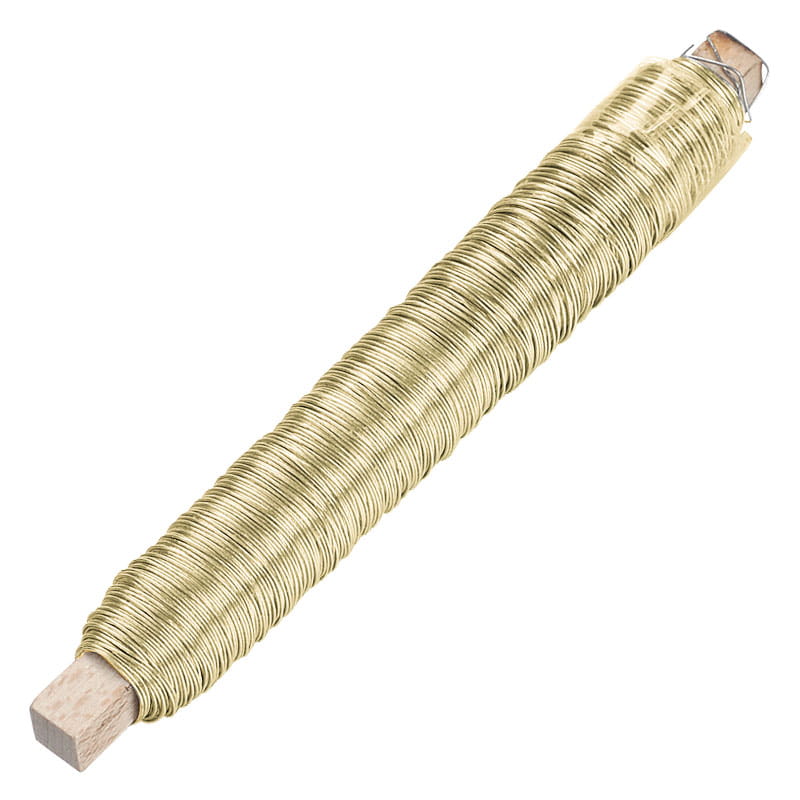 Srebrny drucik na szpulce 50 m z żelaza, pokryty mosiądzem, w kolorze złotym o średnicy 0,5 mm.