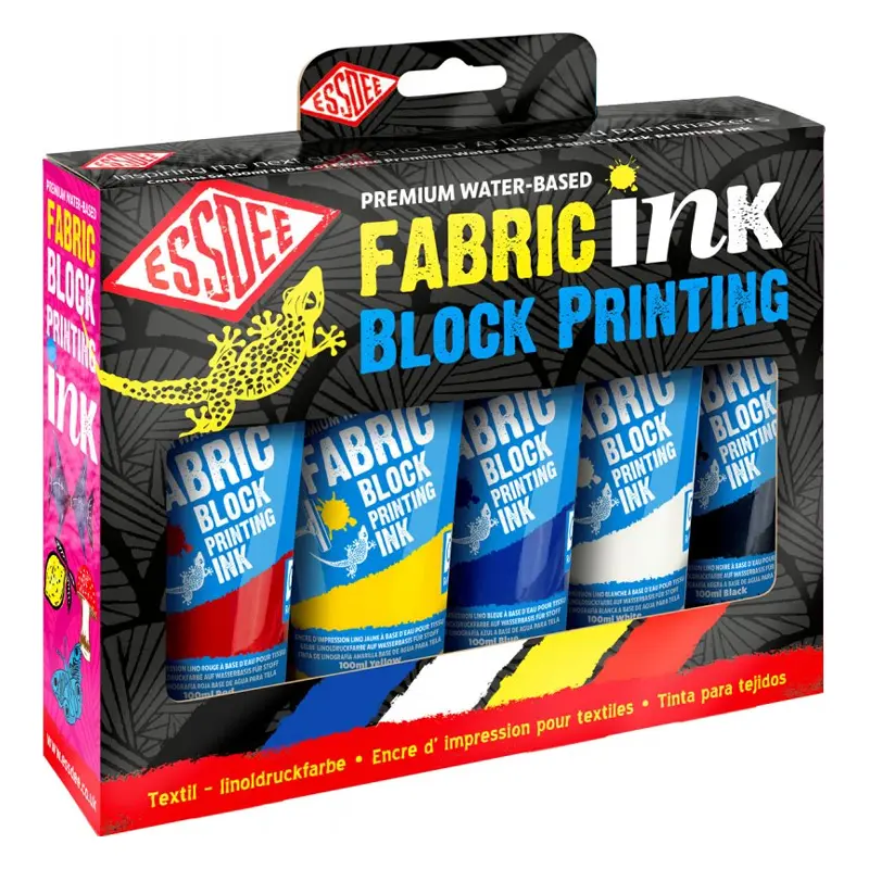 Essdee Fabric Ink zestaw tuszy do druku na tkaninach 5 x 100 ml (Water-Based Block Printing Ink)