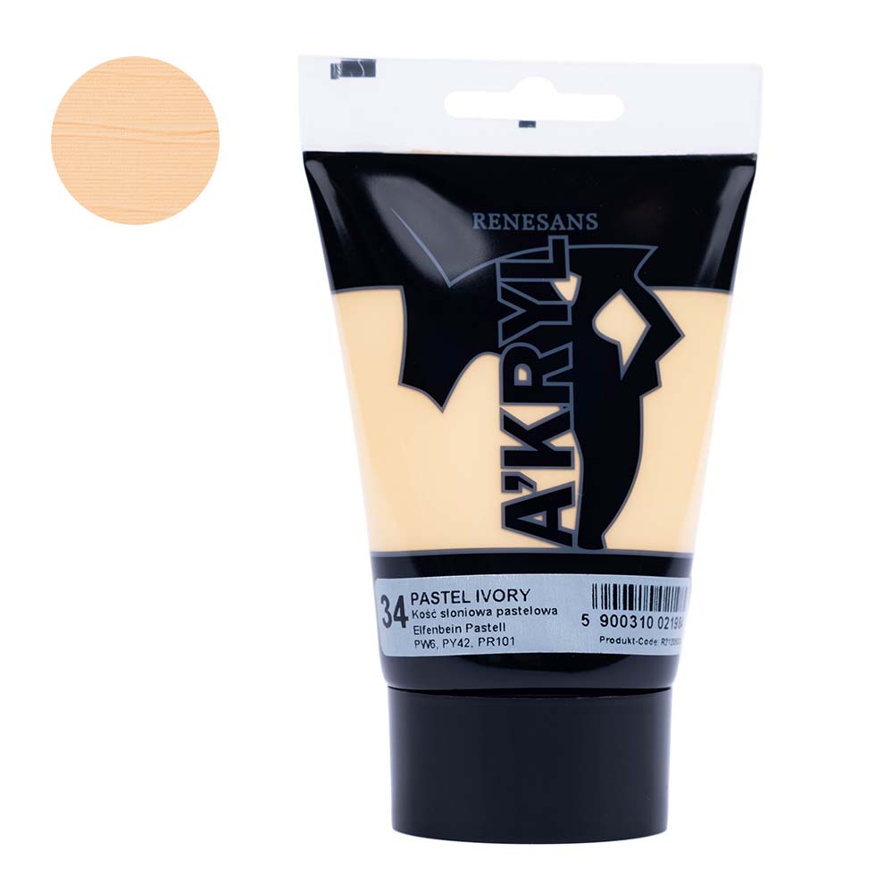 Farba akrylowa Renesans A'kryl 100 ml - 34 Kość słoniowa pastelowa