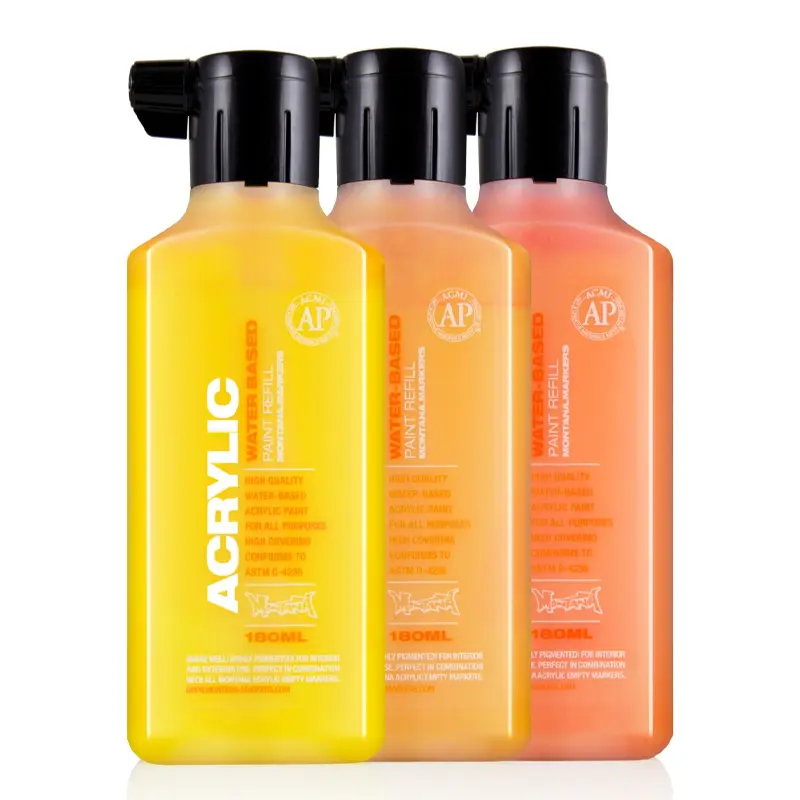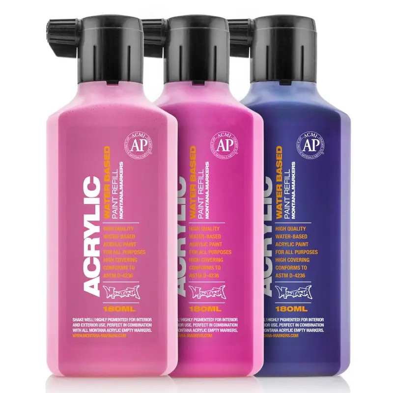 Montana Acrylic Paint Refill 180 ml to profesjonalna, wodna farba akrylowa, która zdobyła uznanie wśród artystów, ilustratorów i miłośników technik mixed media. Dzięki wysokiej jakości składnikom i uniwersalnemu zastosowaniu produkt ten stał się kluczowym elementem systemu Montana Acrylic Color, łączącego markery, farby w sprayu i akcesoria.