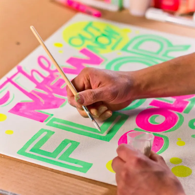 - Podkład: dla fluorescencyjnych kolorów konieczne jest gruntowanie powierzchni bielą (np. Montana Shock White). Wzmocni to efekt fluorescencji.