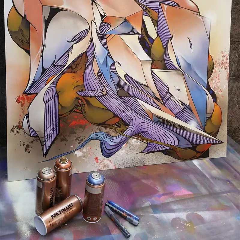 Podczas malowania utrzymuj puszkę w odległości 15-25 cm od powierzchni roboczej. Wykonuj płynne i równomierne ruchy. Eksperymentuj z różnymi dyszami Montana Caps dla uzyskania różnorodnych efektów artystycznych.