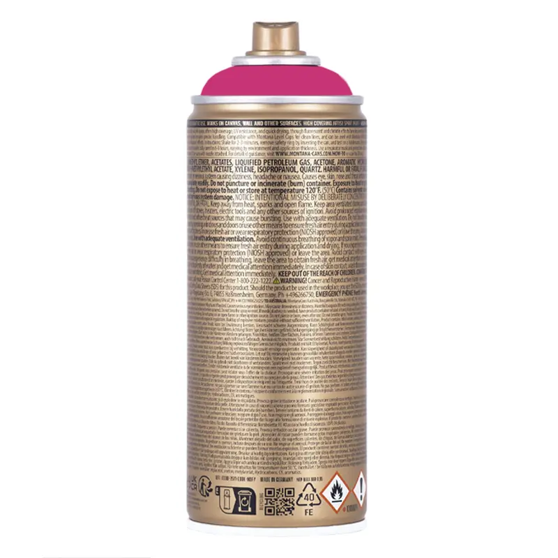 Montana GOLD Spray 400 ml to wysokiej jakości spray akrylowy przeznaczony do graffiti, sztuki oraz projektów DIY. Jego unikalna formuła NC-Akryl zapewnia bardzo dobrą przyczepność, krótki czas schnięcia, wysoką elastyczność oraz odporność na warunki atmosferyczne. Może być stosowany na niemal każdej powierzchni, a po utwardzeniu jest kompatybilny z markerami akrylowymi, farbami akrylowymi, gwaszem, tuszami i kredą.