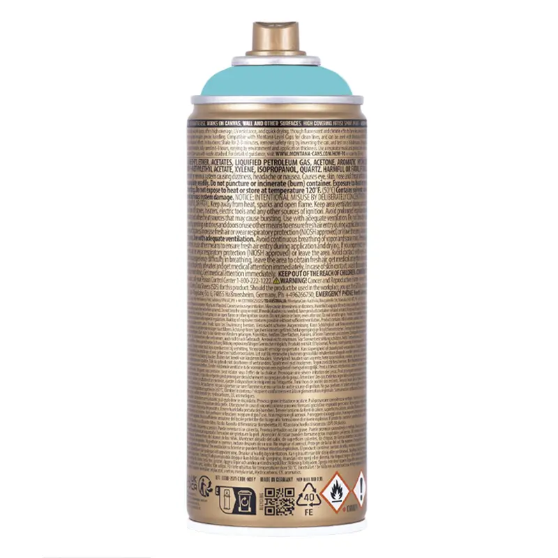 Montana GOLD Spray 400 ml to wysokiej jakości spray akrylowy przeznaczony do graffiti, sztuki oraz projektów DIY. Jego unikalna formuła NC-Akryl zapewnia bardzo dobrą przyczepność, krótki czas schnięcia, wysoką elastyczność oraz odporność na warunki atmosferyczne. Może być stosowany na niemal każdej powierzchni, a po utwardzeniu jest kompatybilny z markerami akrylowymi, farbami akrylowymi, gwaszem, tuszami i kredą.