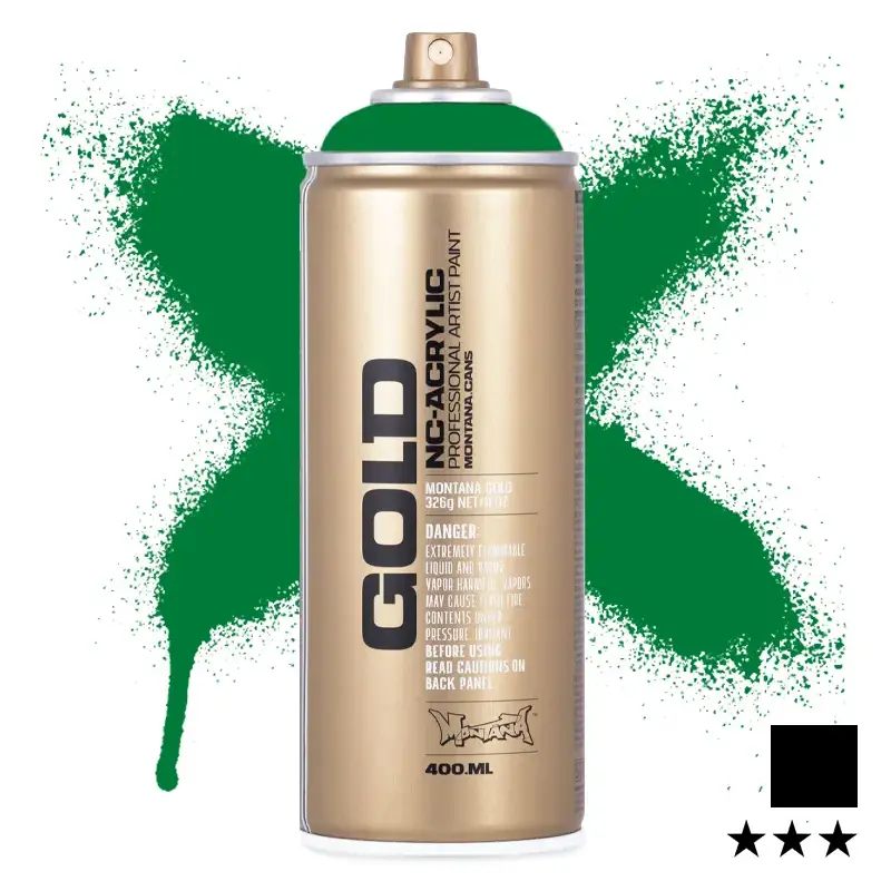 Montana GOLD Spray 400 ml to wysokiej jakości spray akrylowy przeznaczony do graffiti, sztuki oraz projektów DIY. Jego unikalna formuła NC-Akryl zapewnia bardzo dobrą przyczepność, krótki czas schnięcia, wysoką elastyczność oraz odporność na warunki atmosferyczne. Może być stosowany na niemal każdej powierzchni, a po utwardzeniu jest kompatybilny z markerami akrylowymi, farbami akrylowymi, gwaszem, tuszami i kredą.