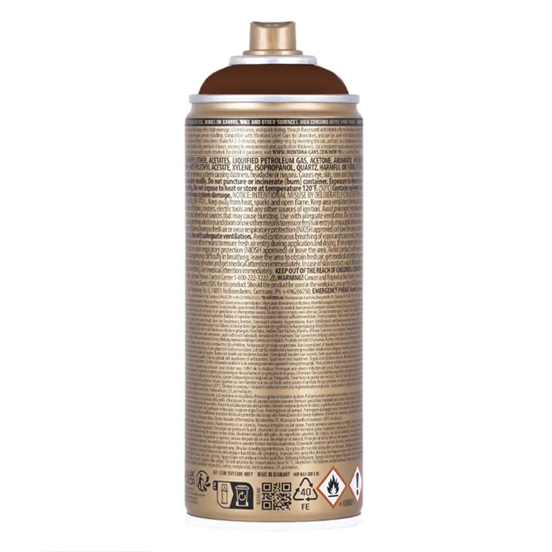 Montana GOLD Spray 400 ml to wysokiej jakości spray akrylowy przeznaczony do graffiti, sztuki oraz projektów DIY. Jego unikalna formuła NC-Akryl zapewnia bardzo dobrą przyczepność, krótki czas schnięcia, wysoką elastyczność oraz odporność na warunki atmosferyczne. Może być stosowany na niemal każdej powierzchni, a po utwardzeniu jest kompatybilny z markerami akrylowymi, farbami akrylowymi, gwaszem, tuszami i kredą.