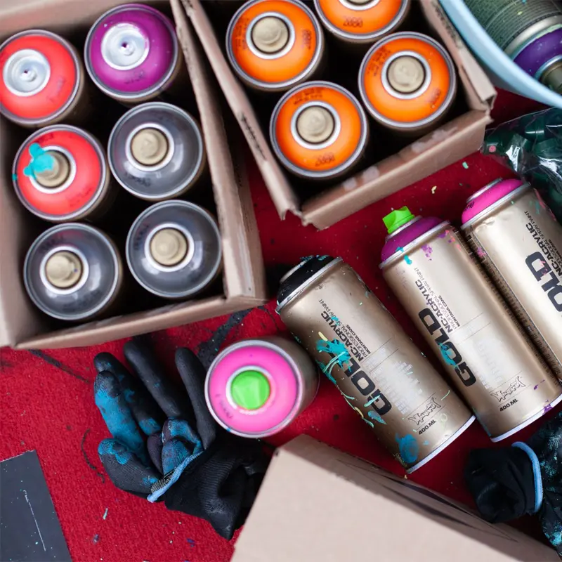 Montana GOLD Spray 400 ml to wysokiej jakości spray akrylowy przeznaczony do graffiti, sztuki oraz projektów DIY. Jego unikalna formuła NC-Akryl zapewnia bardzo dobrą przyczepność, krótki czas schnięcia, wysoką elastyczność oraz odporność na warunki atmosferyczne. Może być stosowany na niemal każdej powierzchni, a po utwardzeniu jest kompatybilny z markerami akrylowymi, farbami akrylowymi, gwaszem, tuszami i kredą.