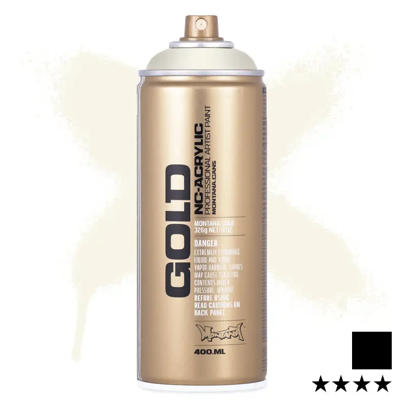Montana GOLD Spray 400 ml to wysokiej jakości spray akrylowy przeznaczony do graffiti, sztuki oraz projektów DIY. Jego unikalna formuła NC-Akryl zapewnia bardzo dobrą przyczepność, krótki czas schnięcia, wysoką elastyczność oraz odporność na warunki atmosferyczne. Może być stosowany na niemal każdej powierzchni, a po utwardzeniu jest kompatybilny z markerami akrylowymi, farbami akrylowymi, gwaszem, tuszami i kredą.