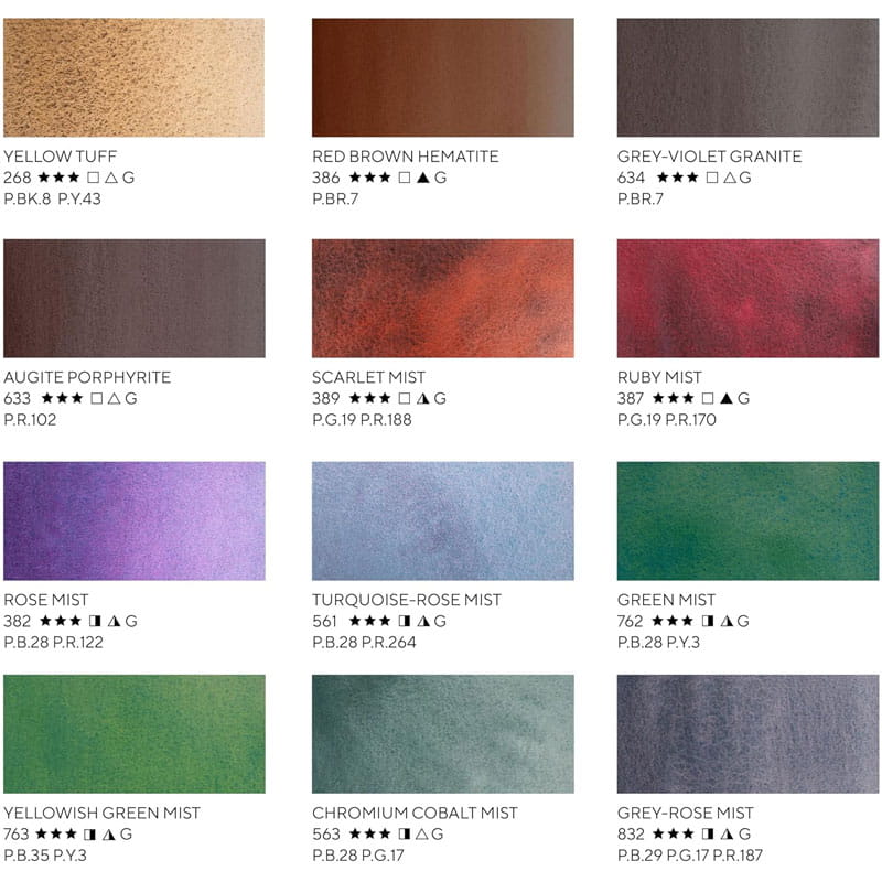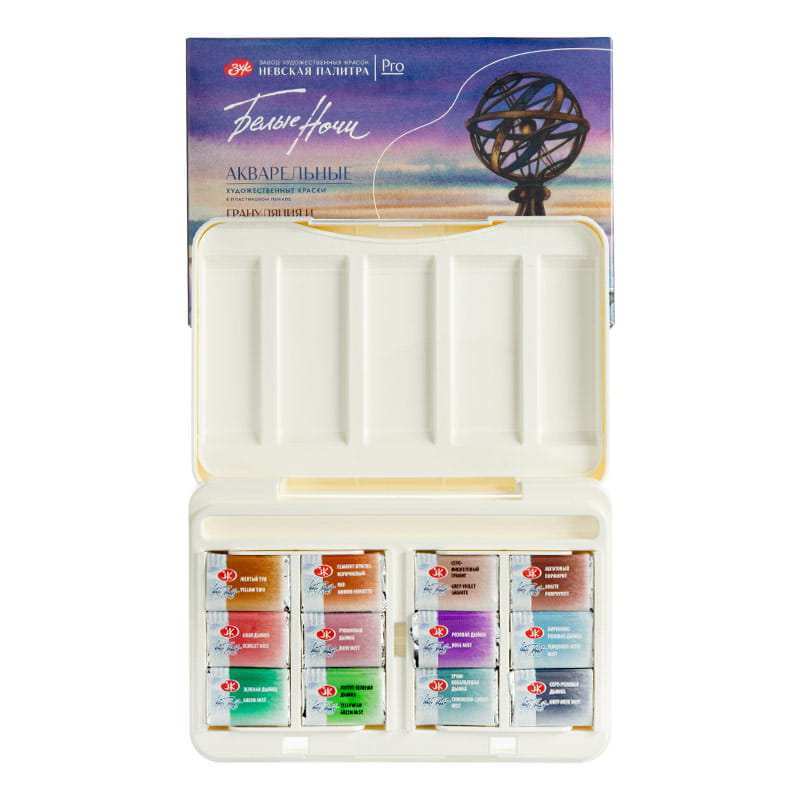 Zestaw farb akwarelowych White Nights 12 szt. Kolory Granulujące + Natural Earth