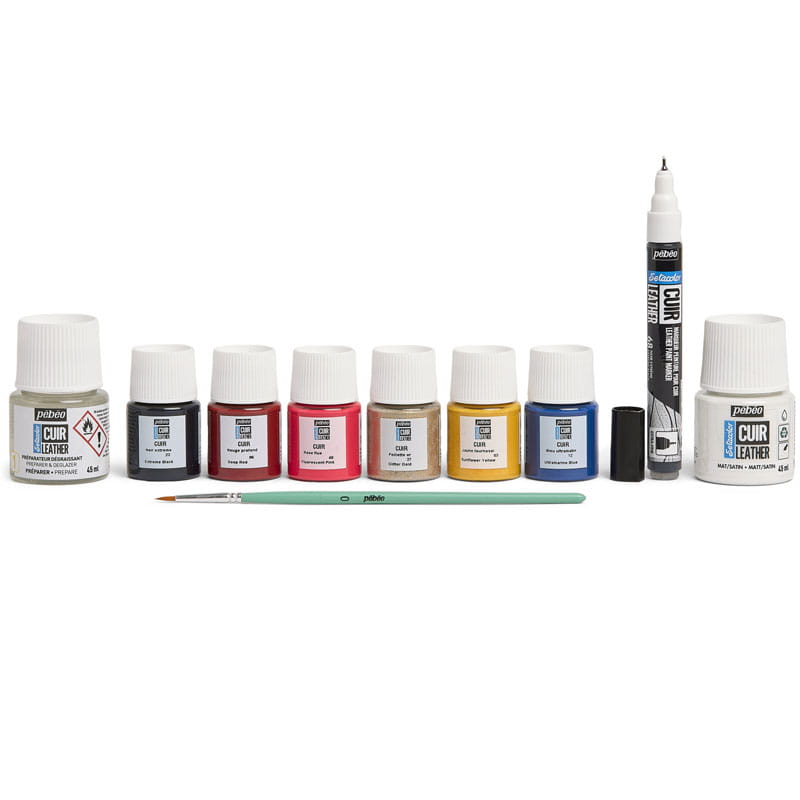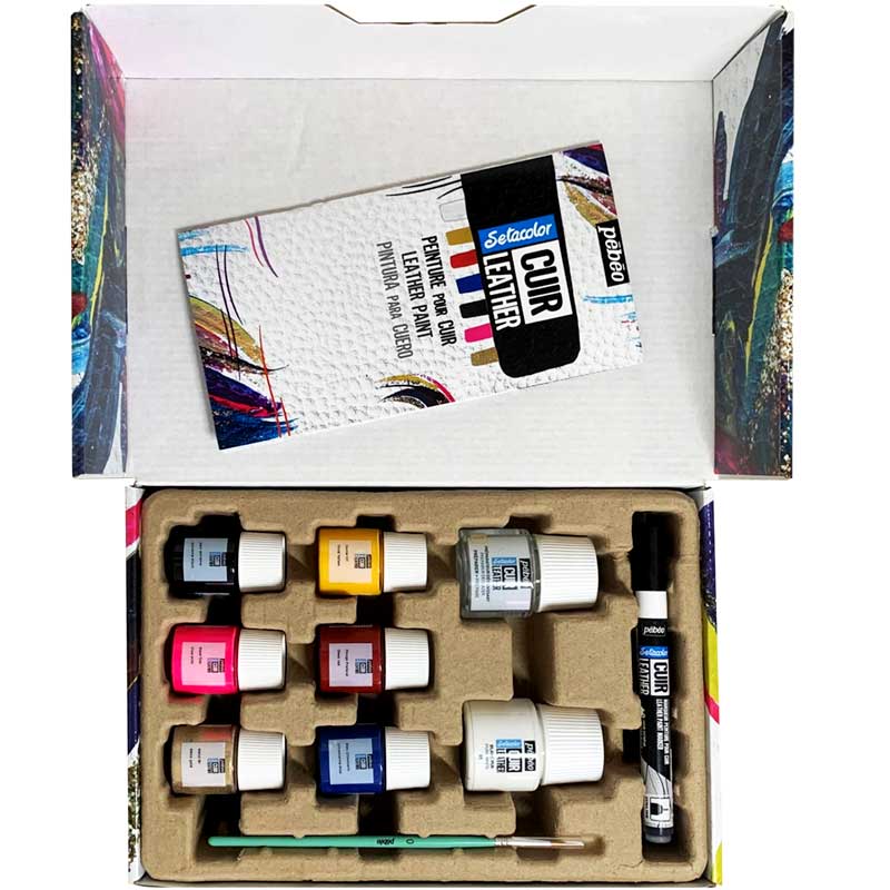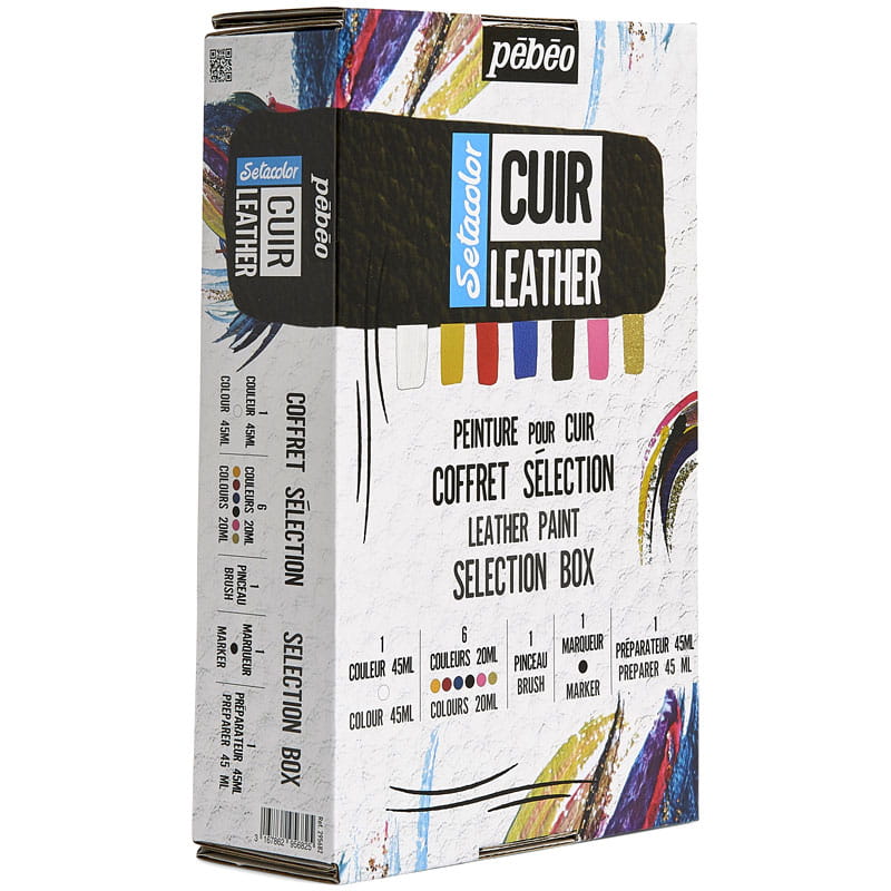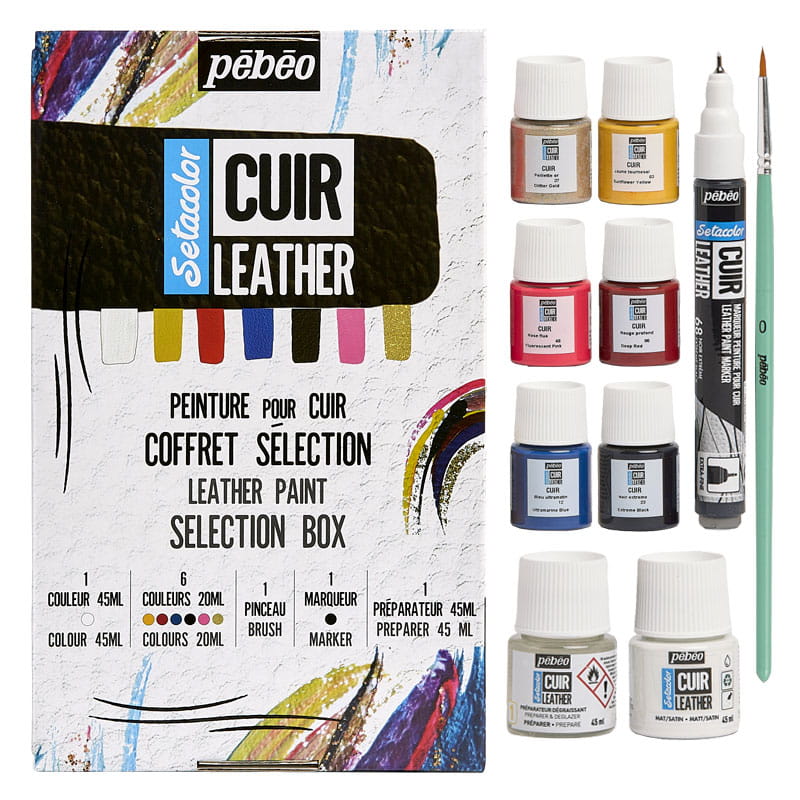 Farby, markery i media z serii Setacolor Cuir Leather od firmy Pébéo służą do ozdabiania i naprawy skóry naturalnej i syntetycznej. Produkty z tej linii charakteryzują się niespotykaną na rynku odpornością na ścieranie i dobrym kryciem. Kolory są intensywne i dobrze się ze sobą mieszają, umożliwiając tworzenie nieskończonej ilości odcieni i efektów.