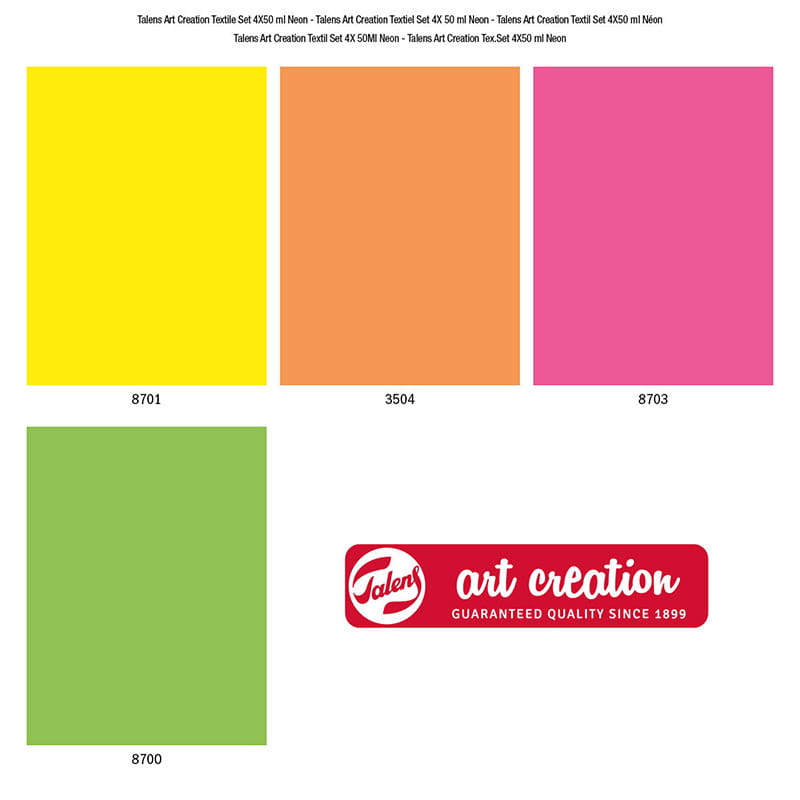 Farby do tkanin Textile Set Art Creation Talens, zestaw 4 kolorów x 50 ml - Neon