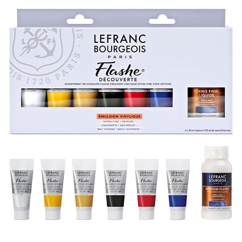 Farby winylowe Flashe Lefranc & Bourgeois Extra-Fine Discovery set 6 x 20ml + 120 ml lakier matowy